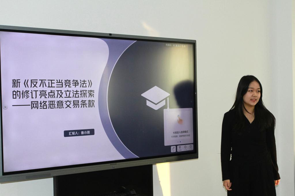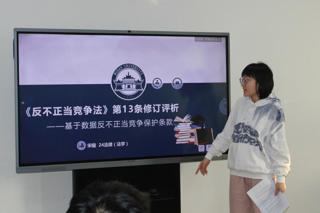 在主题发言环节,宋璇同学聚焦《反不正当竞争法》第十三条,总结其不足之处并给出自己的解释;李桂龙同学则主要从立法史的角度阐释了第十三条从一般条款到具体条款的过渡;刘鑫宇同学主要聚焦第七条关于混淆行为的修订,并就有影响力的案件进行分享;鲁小薇同学的观点集中在平台治理有关和恶意交易的法律界定方面;吴静和张馨两位同学则对新法修订进行了全方位的概述;霍新宇同学讨论了AI生成物的全过程和全链条的保护,尤其是《著作权法》与《反不正当竞争法》相互补充的问题;韩笑宇同学就混淆行为、扩展商业标识保护等重点问题进行了讨论;李佳倩同学聚焦数据抓取问题,认为用具体条款代替一般条款是立法的进步;黄英豪同学在总结此次修订不足的基础上,给出了未来的完善路径;公雯同学讨论了数据抓取的不正当性问题;王馨卉同学关注“内卷式”竞争的不良后果以及影响,阐述了将其在《反不正当竞争法》中的意义;谢语嫣同学通过新旧两法之间的对比,从整体上梳理了新法修订的亮点。