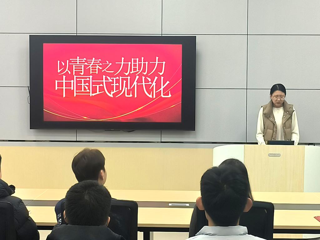 学院团委辅导员王晓迪为团员青年讲授了一堂主题为“以青春之力助力中国式现代化”的团课,围绕“什么是中国式现代化”“中国式现代化的特征”以及“青年一代的使命与担当”等方面展开,并对新时代共青团员和广大青年提出三点期望:一是自信自强,做理想坚定、无私奉献的新青年;二是玉汝于成,做勤奋进取、踔厉奋发的新青年;三是君子不器,做敢为人先、积极进取的新青年。激励大家以青春之我,助力中国式现代化建设。