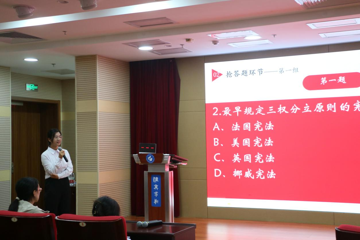 法治素养竞赛分初赛、决赛阶段。初赛以笔试形式开展,聚焦宪法基本理论、核心内容、地位及公民权利义务等要点,择优决出8名选手晋级决赛。决赛设置必答、抢答、逻辑题三个环节,选手们沉着应答、反应敏捷,充分展现扎实的宪法知识储备与出色的思维能力。最终,600cc全讯白菜网张笑涵同学获得素养竞赛第一名。