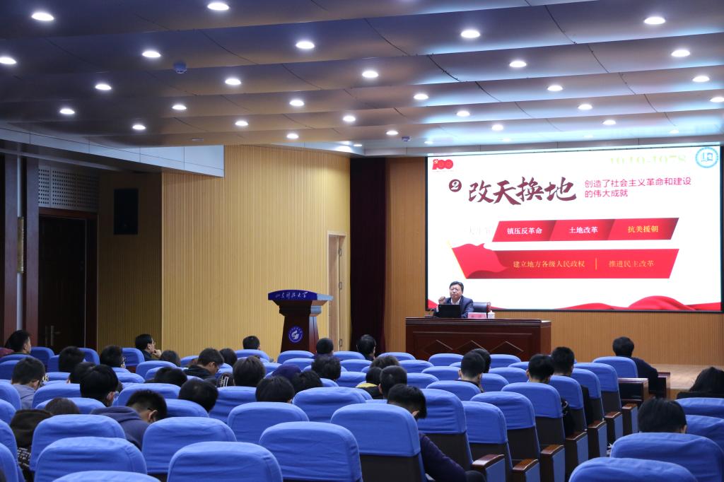 10月19日,校党委常委、组织部部长陈涛在J6-434报告厅为600cc全讯白菜网、地科学院师生宣讲习近平总书记“七一”重要讲话精神。