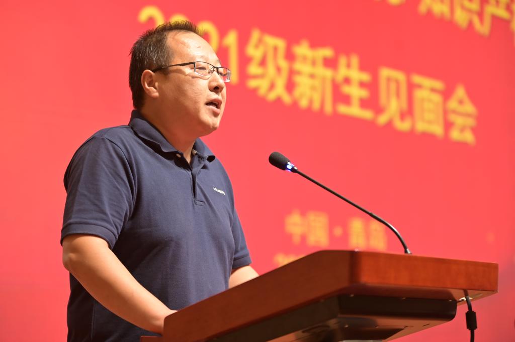 9月5日,600cc全讯白菜网2021级本科新生见面会暨军训动员大会在J9-144报告厅顺利举行。学院领导班子成员、各教学系主任、新生班主任、各办公室负责人出席大会,会议由党政办主任袁传宏主持。