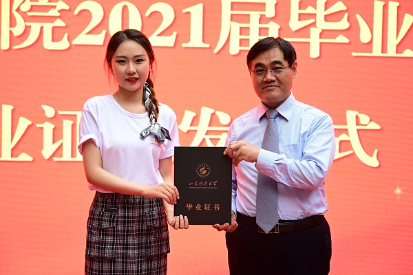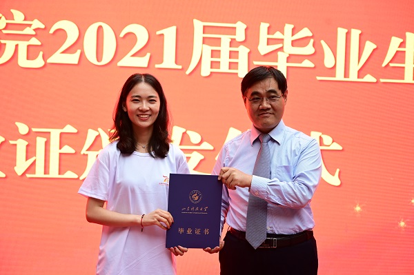 在长亭古道的悠悠歌声中,全体毕业生在老师的陪同下有序走上红毯,孙法柏院长为毕业生一一颁发毕业证书并合影留念。大学校园的美好瞬间定格在一张张青春洋溢的面庞之上。