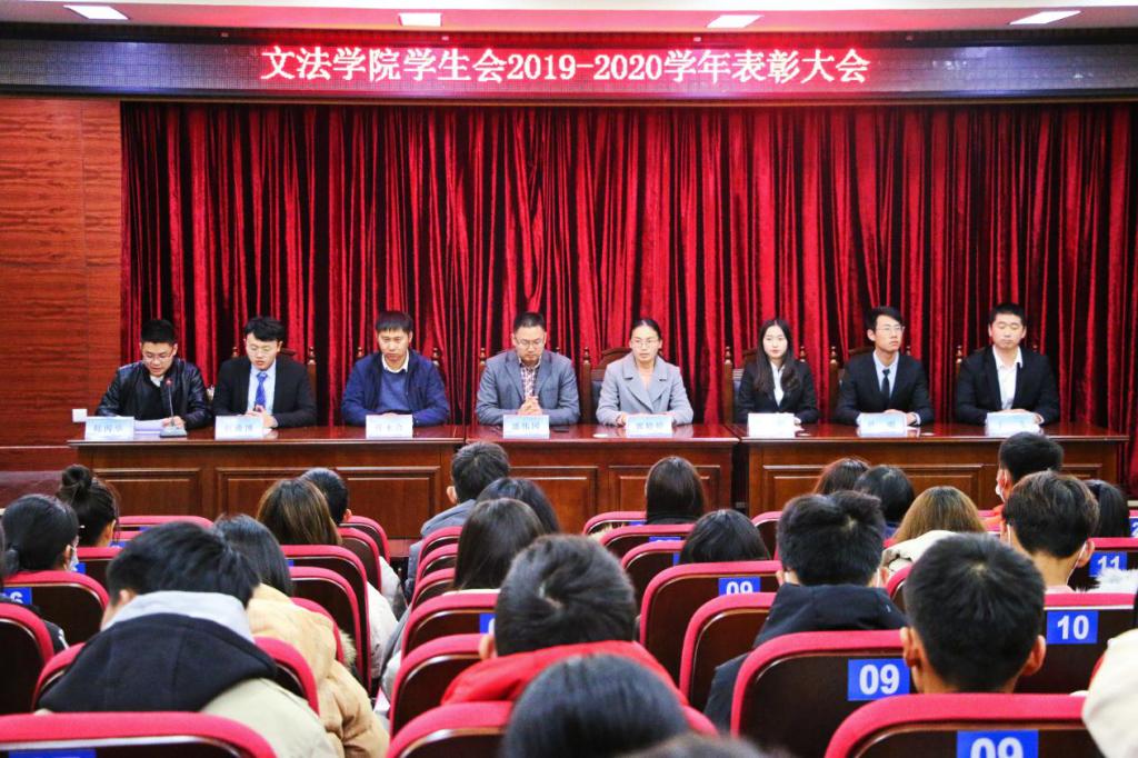 11月27日,600cc全讯白菜网学生会2019-2020学年表彰大会在模拟法庭成功举行。学院党委书记潘伟国、学工办主任(团委书记)郭婷婷、辅导员任永合应邀出席会议,第十六届学生会主席贾俊婷、第十七届学生会主席团成员赵俊博、尹明、于飞以及学院学生会全体人员参加大会。学院学生会指导老师韩丙华主持表彰大会。