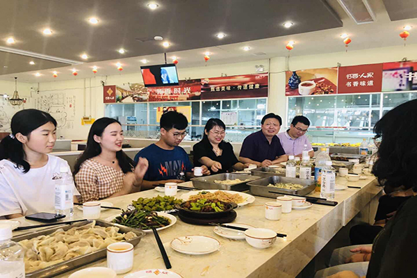 联欢期间,班级还组织同学们和老师一同包饺子。陈涛亲自向同学们示范饺子和馄饨的包法,对手法不熟练的同学进行现场纠正和耐心指导。同学们边包边聊边笑,来自不同地区的同学们各显身手,“元宝”饺子、“柳叶”饺子、“太阳”饺子.......各种花样,层出不穷。饺子出锅后,大家共同举杯进餐,享用自己的劳动成果。陈涛和同学们边吃边聊,关切地询问同学们的生活和学习。席间气氛轻松,大家不时发出阵阵笑声。
