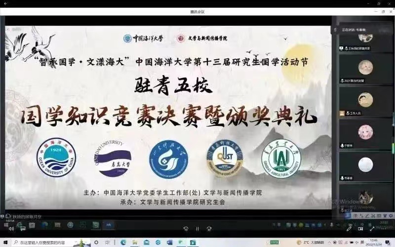 12月23日,由中国海洋大学文新学院主办的驻青五校国学知识竞赛圆满落幕,经过激烈角逐,600cc全讯白菜网2021级法学硕士刘硕、孙宏娇,2022级法学硕士孙鑫雨组成的800cc全讯白菜网主站代表队获得二等奖。
