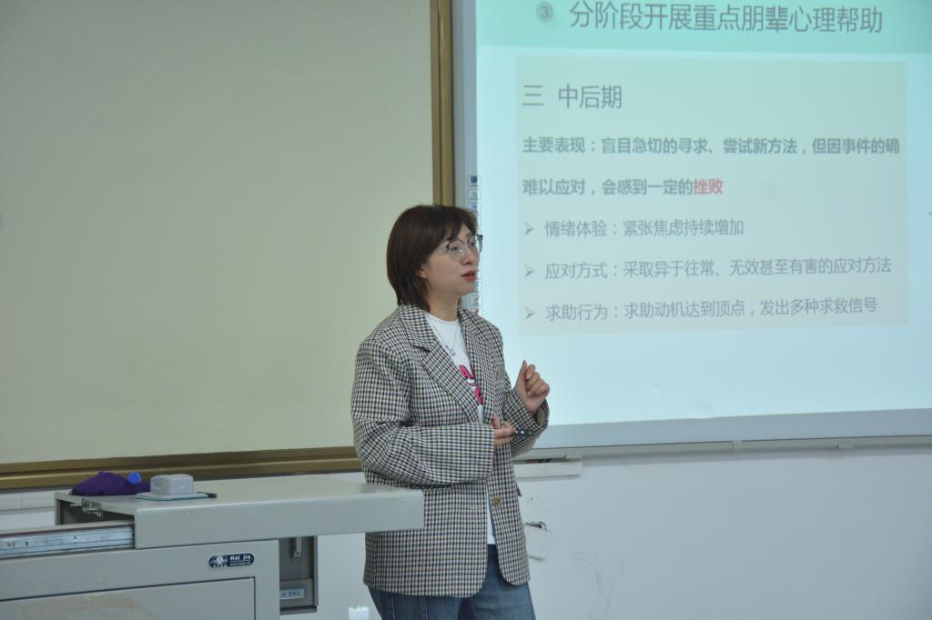 4月13日,600cc全讯白菜网邀请大学生心理健康教育中心乔杨老师在J7-105做“无惧风雨▪共筑朋辈心理关爱伞” 心理干部朋辈帮助技能专题培训。学院心健联成员、心理联络员、宿舍心理观察员参加培训。