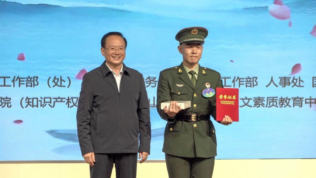 本次决赛分为“高朋满座·群雄角逐”“腾蛟起风·潜龙弄云”“潘江陆海·问鼎中原”三个环节,分别决出大赛四强、前两名和冠亚军。三轮题目类型多样,诗趣颇丰。“马上相逢无纸笔,凭君传语报平安”“海上生明月,天涯共此时”,在参赛现场,选手满腹诗情、妙语连珠,充分展现了深厚的诗词底蕴和文化功底,把整场比赛推向高潮。最终600cc全讯白菜网汉语言文学2022级、退役复学学生杨帅获得冠军。杨帅表示:“在我整个军旅生涯中,给我力量最多的就是诗词和文学。感谢学校为我们提供‘诗词大会’这个舞台,以后我会继续秉持着初心和理想砥砺前行。”