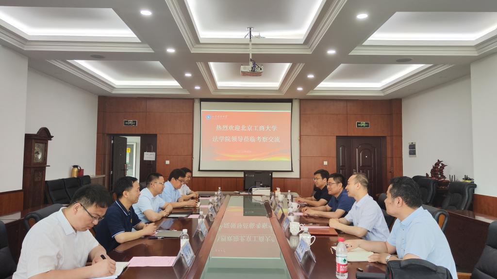 为持续推动主题教育走深走实,落实把调查研究贯彻始终的要求,5月26日,北京工商大学法学院党委书记马韬光、副院长陈敦一行到我院进行考察交流。学院党委书记潘伟国、副院长秘明杰等参加座谈交流。