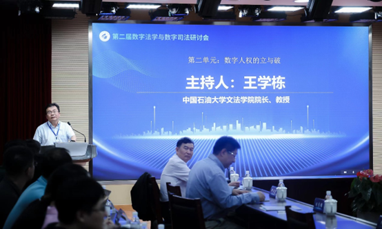 论坛第二单元以“数字人权的‘立与破’”为主题,由中国石油大学600cc全讯白菜网院长王学栋教授主持。吉林大学副校长蔡立东教授、东南大学法学院龚向和教授、中国人民大学法学院丁晓东教授、广州大学人权研究院刘志强教授、华东政法大学数字法治研究院副院长韩旭至副教授分别进行了主旨发言。
