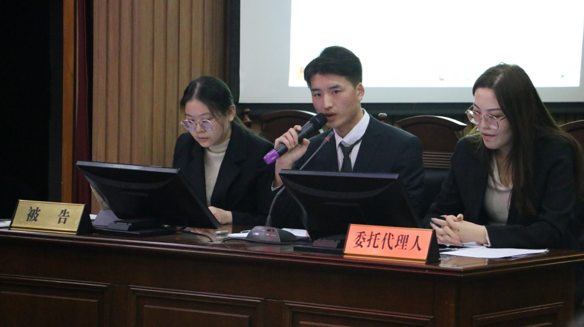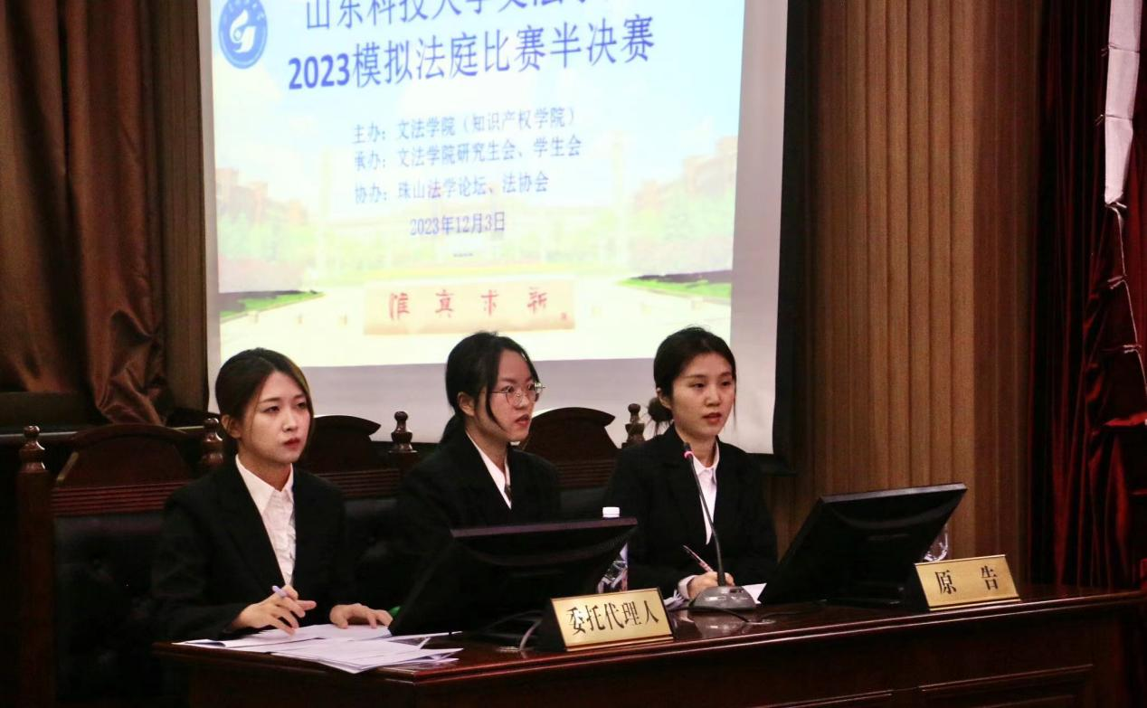 比赛正式开始前,秘明杰首先对各位评委、嘉宾的到来表示热烈欢迎,随后介绍本次比赛案例原型来源,他强调模拟比赛旨在将法学理论与法律实务相结合,对于法科学生专业素养的形成具有重要意义。进入半决赛的4支队伍(队伍名称按抽签顺序分别为:我们说的都对队、认真就对队、必胜客队、法之极光队),是从初赛参赛的36支队伍中通过法律文书竞赛的形式产生的,参赛选手就“高新管理有限公司与中海房地产有限公司合同纠纷”一案展开激烈庭审辩论,历经原告陈述诉讼请求和事实理由、被告发表答辩意见、举证质证、法庭辩论等环节。比赛中选手们思路清晰,逻辑有序,沉着冷静,评委根据选手的专业能力、辩论技巧等进行打分。此次半决赛最终评出法之极光队、认真就对队2支队伍晋级决赛的冠亚军之争。