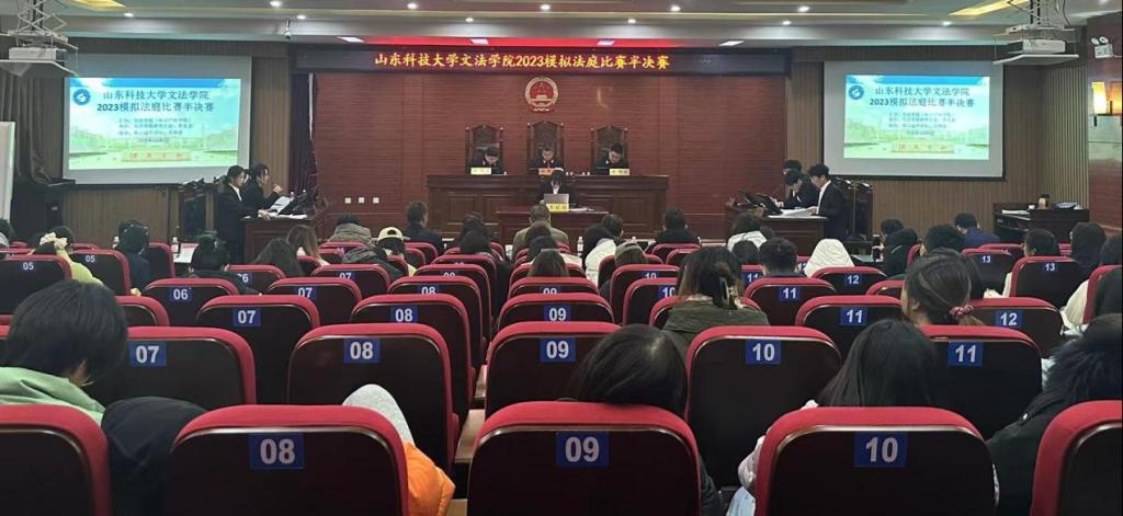 此次模拟法庭半决赛合议庭由山东理证律师事务所副主任徐效国律师任模拟审判长,该所律师王涛、孙小凡担任模拟审判员。半决赛评委由山东理证律师事务所律师李增福、徐公国、牛浩学、张蕾,北京市兰台(青岛)律师事务所律师王正起、赵明睿,山东畅策律师事务所律师王义娥共7人担任。与此同时,北京市兰台(青岛)律师事务所主任刘晨、副主任吴刚,山东理证律师事务所宋林浩律师,以及法学系主任吴立志和孙明泽、张钦润等老师出席此次活动。我校百余名本科生和硕士研究生到场观摩比赛参加聘任仪式。