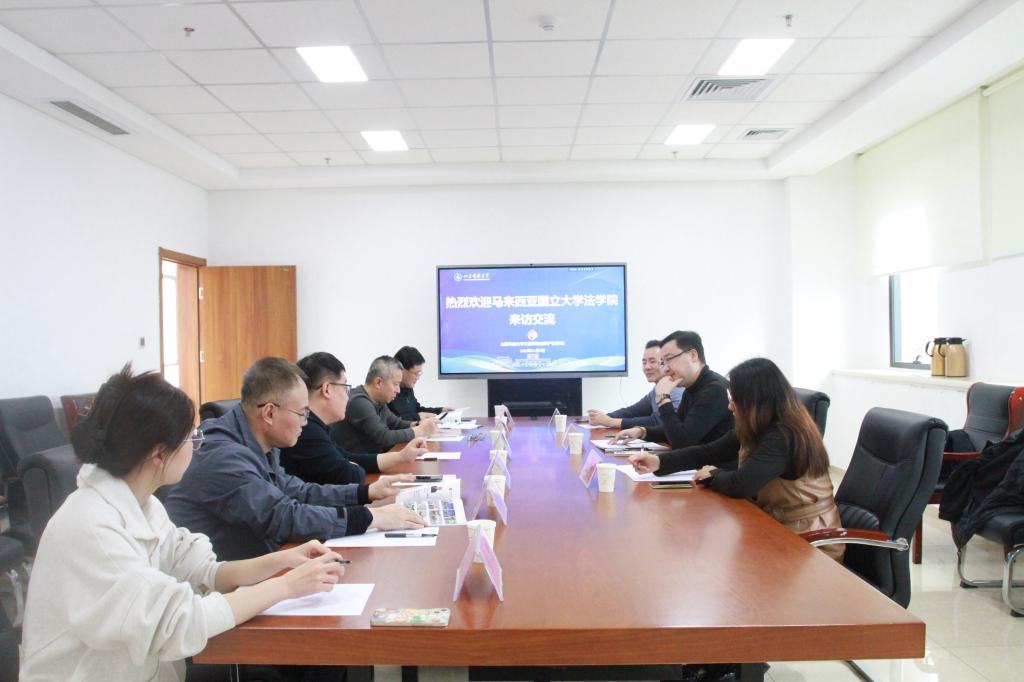 座谈会上,学院对马来西亚国立大学的到访表示热烈欢迎,随后秘明杰详细介绍了我院法学学科建设历程、师资布局及人才培养特色,介绍了学院在实践教学改革、跨境法律研究等方面的成果。王旭代表马来西亚国立大学法学院分享了该校办学经验,介绍了该校办学教育特色,并提出了学校在共建办学与学术交流方面的合作设想。