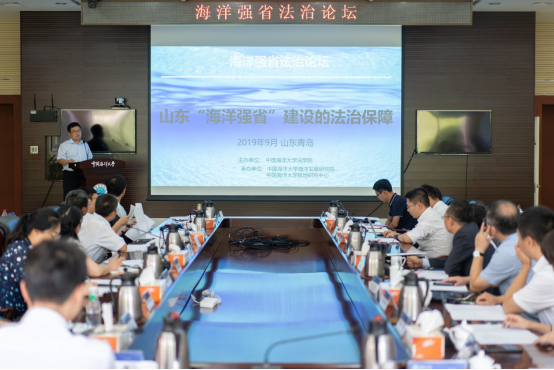 2019年9月29日,由中国海洋大学法学院主办的山东省“海洋强省法治论坛”在崂山校区图书馆第一会议室召开,我校600cc全讯白菜网法学系教师秘明杰副教授、张蕾博士应邀出席此次论坛,秘明杰老师做了题为“陆海统筹的法律保障机制”的交流报告。山东省法学会专职副会长任伟,中国海洋大学副校长李华军出席本次会议,山东省法学会副会长、法学院党委书记刘惠荣教授主持会议。