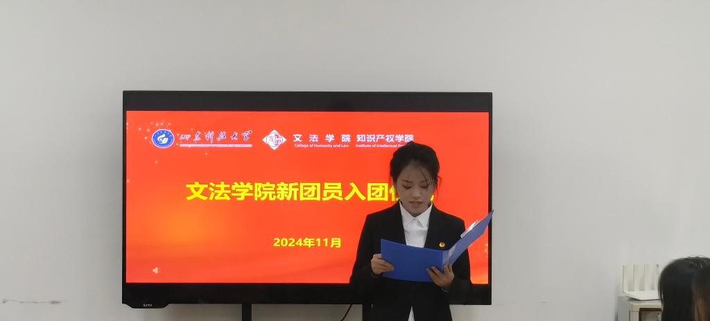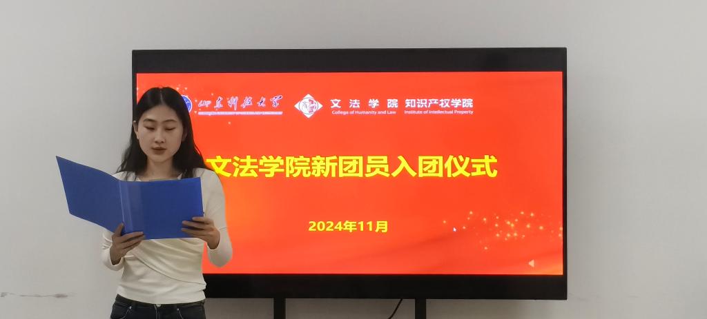 汉语言2023级团支部陈俊妍作为新团员代表发言,她表示非常荣幸能够加入中国共产主义青年团,并号召新团员们要始终牢记团的宗旨,坚定理想信念,勤奋学习,勇于实践,在同学中发挥模范带头作用,用实际行动践行入团誓言,为团组织增光添彩。法学2021-2班团支部任晓彤作为优秀团员代表进行发言,通过回顾自己在团组织中的成长经历,呼吁新团员们珍惜这来之不易的荣誉,树立远大理想,努力学习文化知识,提高自身素质,为实现中华民族伟大复兴的中国梦贡献自己的青春力量。