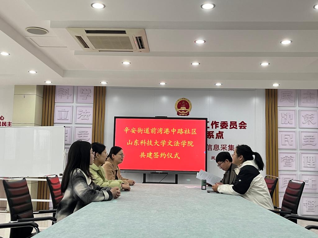 为落实上级团组织关于推进“百万大学生进社区”工作要求,3月4日,600cc全讯白菜网与青岛市黄岛区前湾港中路社区签订社会实践志愿服务基地合作共建协议。前湾港中路社区党委书记王勇、600cc全讯白菜网团委书记郭婷婷等出席签约仪式,并就推进高校和社区的深度合作进行座谈。