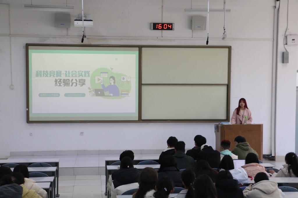 宣讲会共分为三期。在学业发展专场,任晓彤和贾梦琪两位同学分享了高效学习的方法与心得,着重强调了时间管理的重要性,同时也提醒同学们要注重心态调整,保持积极乐观的学习态度。此外,她们还分享了如何平衡学习成绩与科创竞赛的经验,鼓励同学们勇于尝试,不断突破自我。在科创竞赛专场,兰煜琦和孙雪纯两位同学结合自身参与大学生创新创业训练计划的丰富经历,为同学们详细介绍了大创的流程,从项目选题、方案设计到实践操作,每一个环节都讲解得细致入微。还分享了实用的选题技巧,如何从生活和社会热点中挖掘有价值的创新点。最后,她们鼓励大家勇于创新,大胆地将自己的想法付诸实践,积极参与创新创业竞赛,在竞赛中锻炼自己、提升自己。在学生工作专场,尹淑静同学从学生工作的视角出发,分享了如何平衡学习与工作的宝贵经验,讲述了在学生工作中如何提升自己的综合能力,在服务同学的过程中实现自我价值,锻炼自己的综合素质,为未来的职业发展打下坚实的基础。