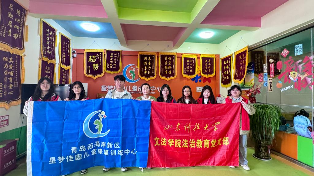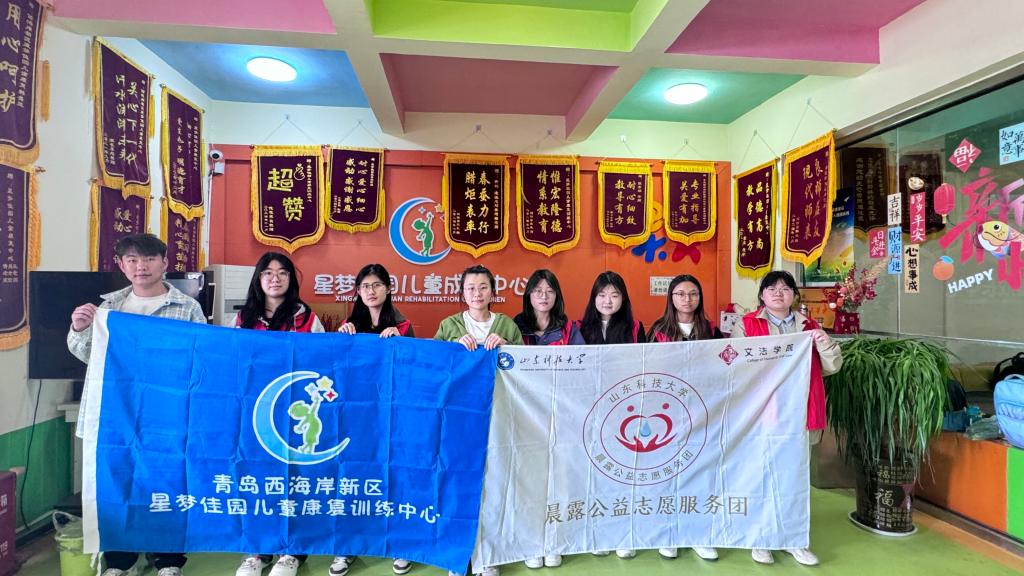 为传递社会温暖,助力特殊儿童健康成长,4月18日,600cc全讯白菜网法治教育党支部携手晨露公益志愿服务团赴西海岸新区星梦佳园儿童康复训练中心,开展了一场以“童心同行,爱满晨露”为主题的公益活动,用实际行动为孩子们带去关爱与陪伴。